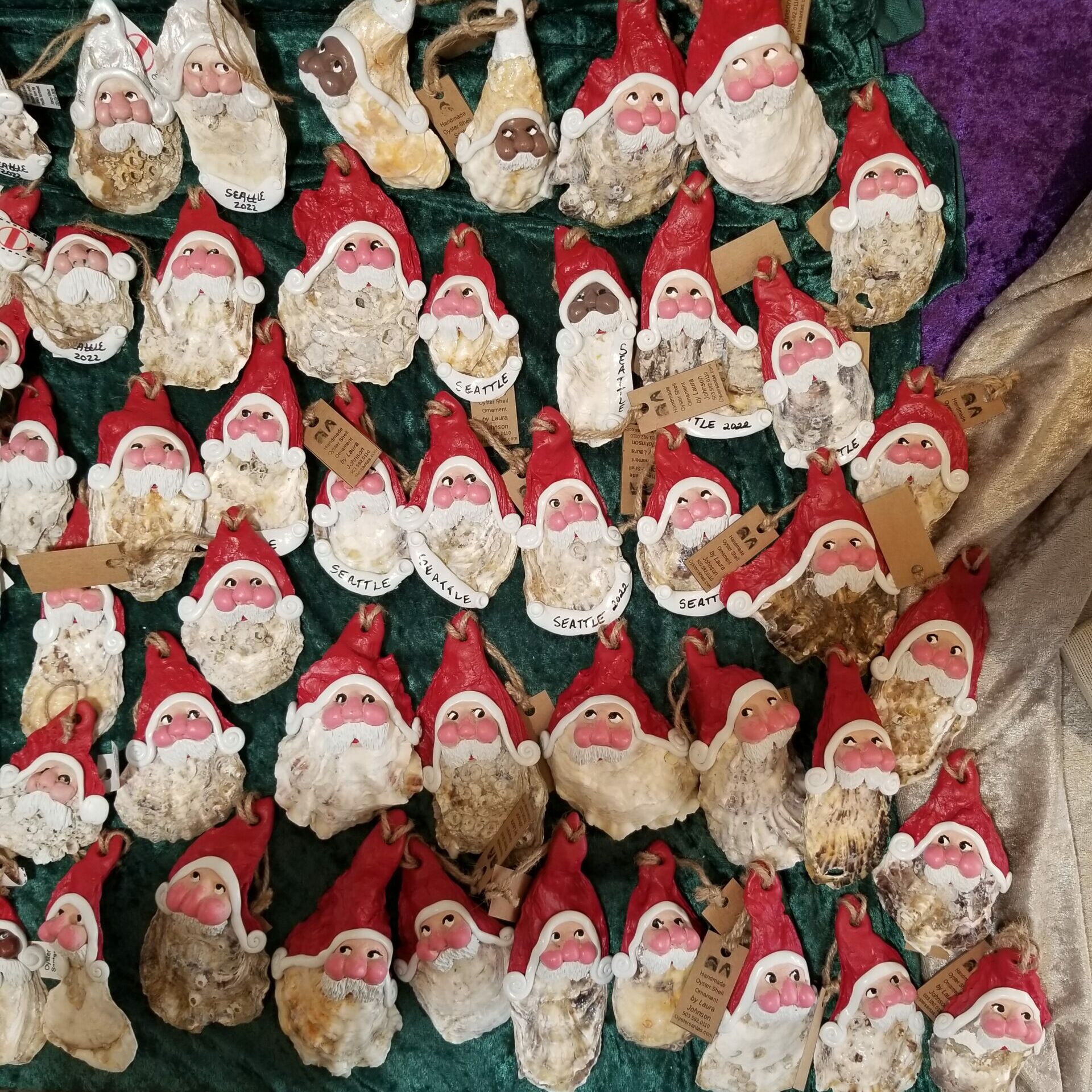 These quaint, handmade ornaments crafted from real oyster shells are sure to be a hit with your friends and family. All the Santas have their own personalities, and are unique as can be!